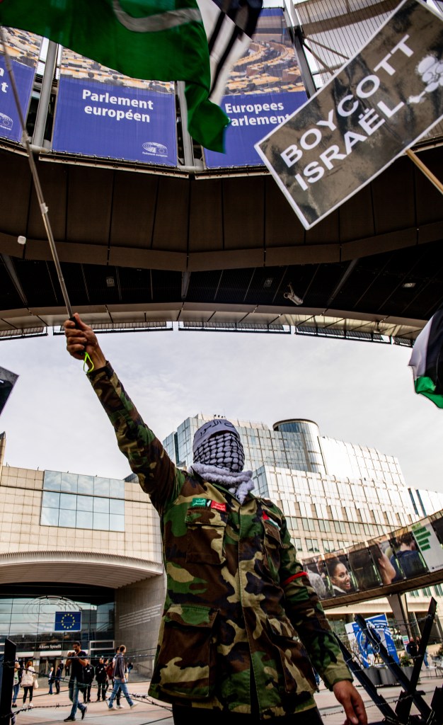 De nombreux soutiens venus de différents pays d’Europe ont rejoint l’appel : Pays-Bas, Suisse, France, Allemagne, Angletterre… Ils et elles ont, derrière les organisations palestiniennes, mené une marche déterminée et animée jusqu’à la Place du Luxembourg où des prises de paroles ont eu lieu devant le Parlement Européen.