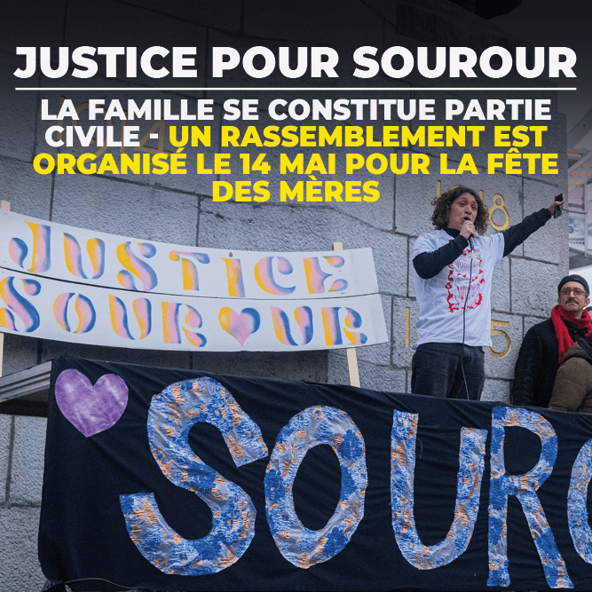 Dans l’incertitude que l’enquête soit menée dans toute sa profondeur, la famille de Sourour a annoncé se constituer en partie civile le 9 mai. L’enquête sera donc placé sous l’autorité d’un·e juge d’instruction indépendant·e, grâce au travail de la famille. Ces procédures sont extrêmement couteuses économiquement et physiquement pour les familles, il s’agit donc de les soutenir dans la rue et économiquement, via les cagnotte en ligne (voir le lien en description). Un rassemblement est organisé le 14 mai à 14h le jour de la fête des mères à la place Poelaert, soyons nombreux.ses. Justice pour Sourour !