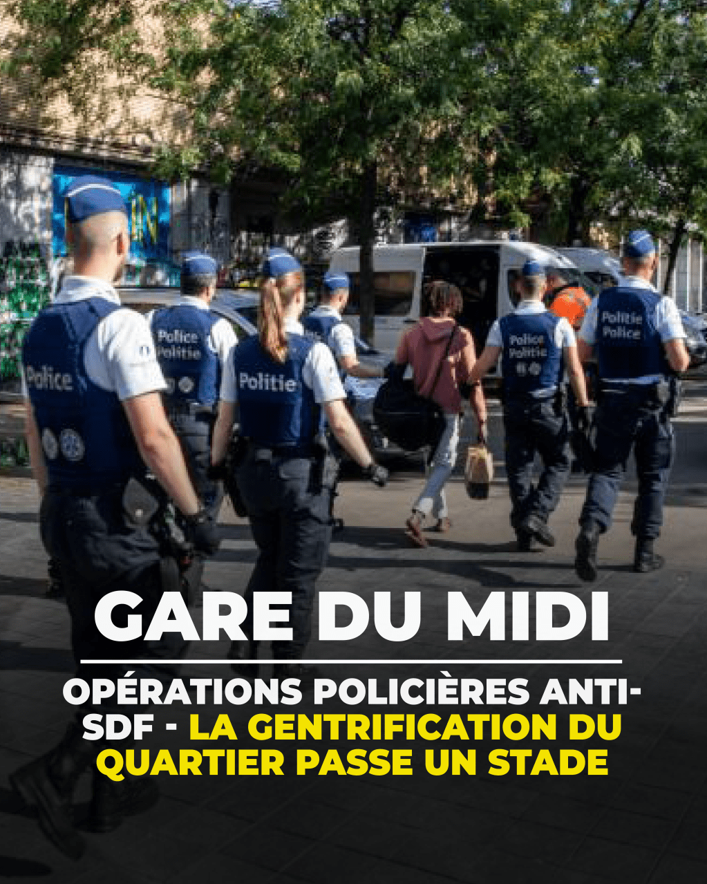 Après la gare du Nord et le parc Maximilien, c’est aujourd’hui le quartier de la gare du Midi qui est touché par des interventions policières visant à déloger toutes les personnes sans domicile dans le quartier Midi. Ces vagues d’arrestations et de contrôles des forces de l’ordre ont commencé dès le début de l’été et révèlent l’envie des pouvoirs publics de « nettoyer » ce quartier dans l’optique d’une gentrification planifiée sans s’attaquer au problème principal : l’absence de logement qui touche une partie de la population.