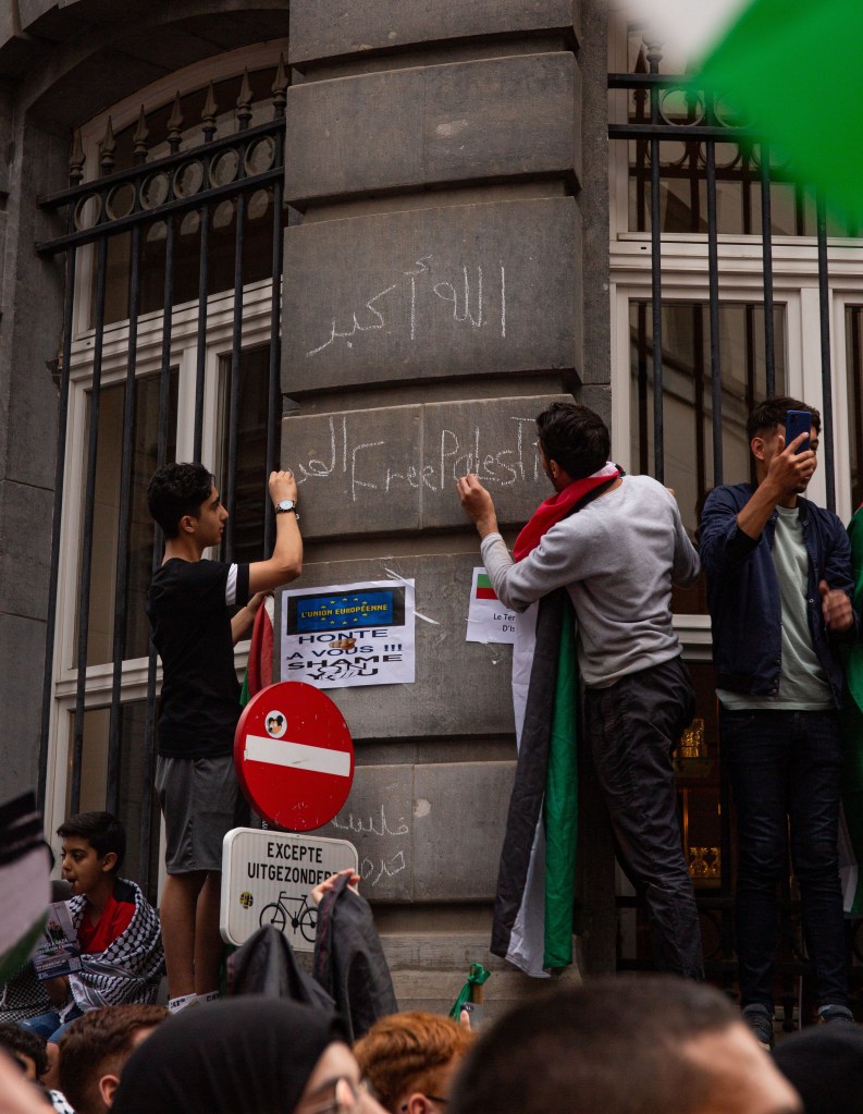 EDIT : Notre texte manquait de nuances et nous nous en excusons. Revenons donc sur les faits : plusieurs organisations (dont Ecolo J, la FGTB et les jeunes socialistes) ont pris la parole dans les médias pour se dissocier publiquement de l’appel de Samidoun, insinuant que cette organisation, à travers son appel à soutenir la résistance, légitimait les crimes de guerre du H@mas. Cette insinuation est fausse, et donc calomnieuse. La plupart des médias l’ont d’ailleurs compris en ce sens en pointant Samidoun de « pro Hamas. A nouveau, il n’en est rien. Samidoun, comme le droit international reconnaît le droit à la résistance palestinienne et à l’autodétermination. Samidoun a aussi été intimidé par des organisateur.rices dès son arrivée (tentative d’interdiction de drapeau pour un prisonnier politique en France Georges Abdallah (combattant du FPLP), une gifle a été donnée).