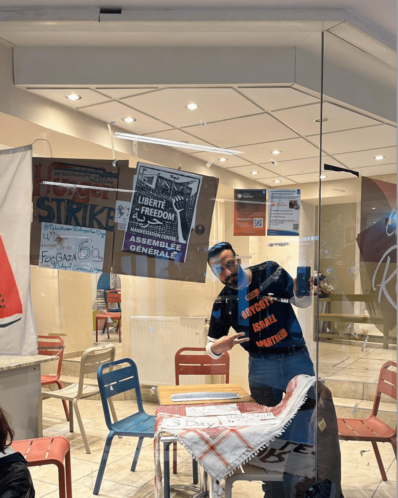 Depuis 8 jours, Omar, un réfugié gazaoui, journaliste palestinien et bruxellois, est en grève de la faim pour protester contre le génocide en cours à Gaza perpétré par l’armée d’occupation israélienne, avec le soutien des Etats-Unis et de l’Europe. Il s’est installé ce vendredi 5 janvier à l’Université Libre de Bruxelles, dans le bâtiment F. Omar appelle à le soutenir et à amplifier l’écho de son action.
