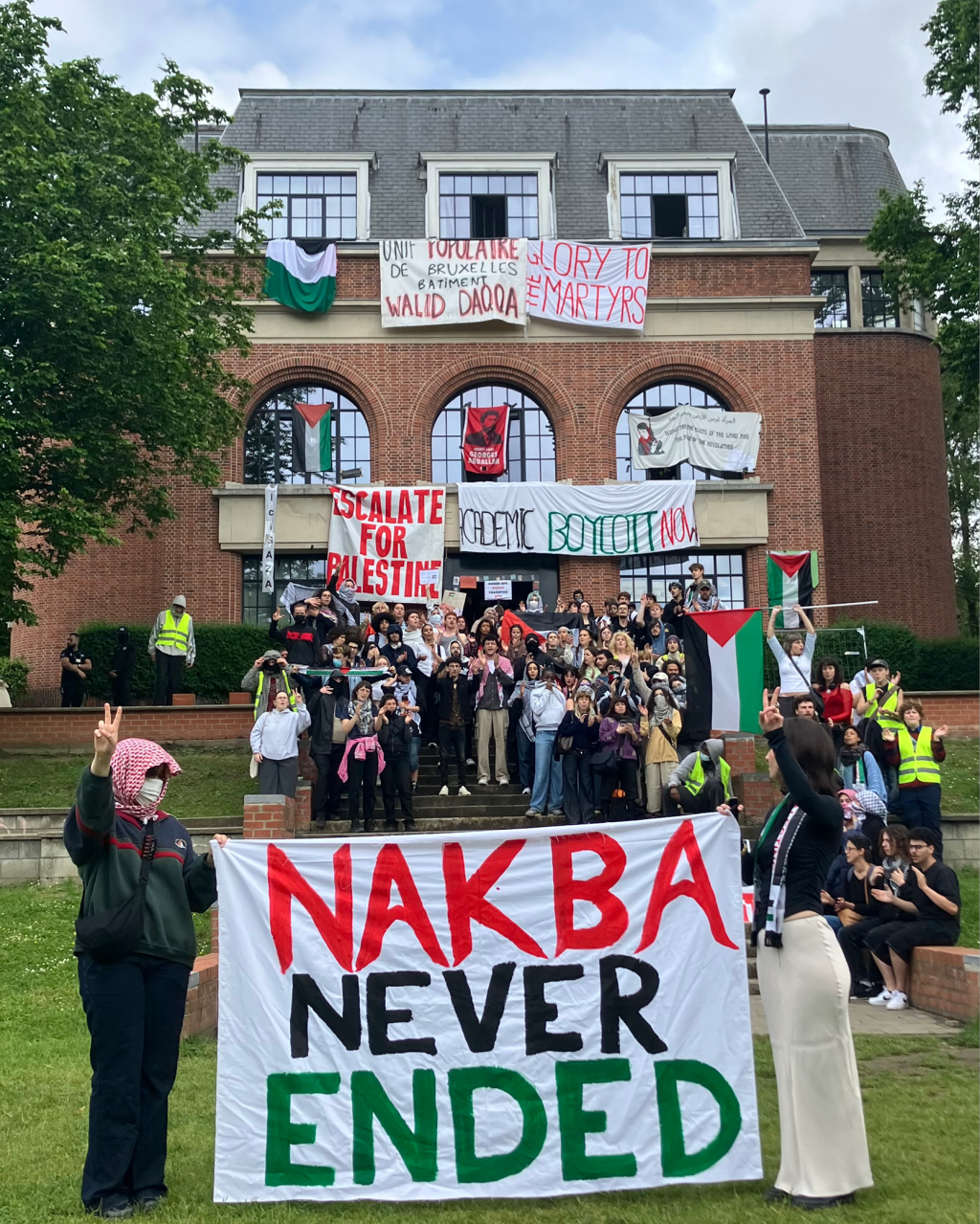 Depuis le 7 mai, des étudiant·es occupent le bâtiment B de l’ULB, qu’ils et elles ont renommé « bâtiment Wallid Daqqa », en mémoire d’un ancien leadeur de la résistance palestinienne. En parallèle, des campements ont été lancés sur 6 autres universités belges. A l’ULB, les étudiant·es ont obtenu la suspension d’un partenariat avec l’université de Tel-Aviv. Les partenariats avec Thalès, entreprise française impliquée dans la colonisation en Palestine, ont également pris fin et ne seront pas renouvellés. L’ULB a également promis de supprimer toutes les offres d’emplois de Thalès dont l’ULB faisait jusque-là la promotion sur son site internet1. Cependant, leurs autres revendications n’ont pas encore été entendues : la rectrice de l’ULB, Annémie Schauss, s’oppose à un boycott académique total de l’Etat Israélien. Elle se positionne donc pour le maintien de différents partenariats notamment avec Technion, un institut israélien de technologie.