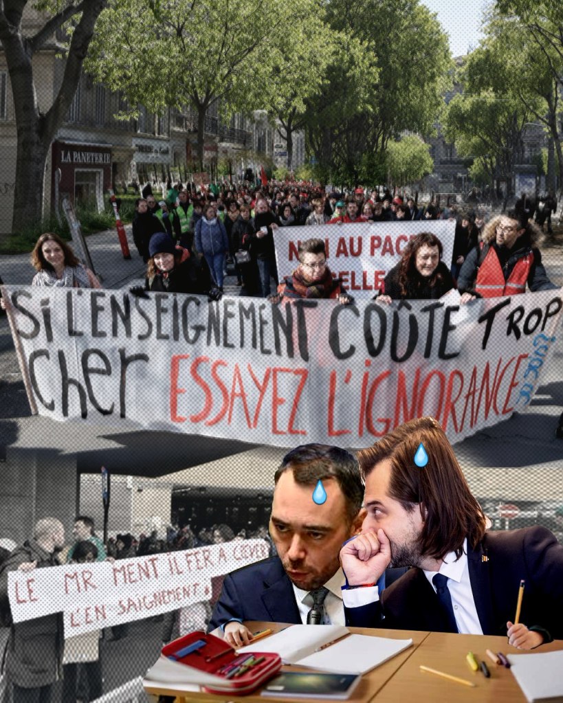 À l’appel du front commun syndical des enseignant·es, une série d’actions, et en particulier des grèves générales, rythmeront les trois semaines à venir pour les établissements scolaires de Wallonie-Bruxelles. L’objectif ? Protester contre les mesures du nouveau gouvernement MR-Engagés, jugées destructrices pour le système éducatif.