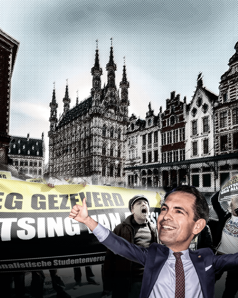 Ce mercredi 26 février, le président du parti d’extrême-droite Vlaams Belang (VB), Tom Van Grieken, est invité pour une conférence à Leuven. Les associations anti-fascistes* appellent à un rassemblement, au centre culturel de Leuven (Rommanse Poort) où a lieu la conférence.