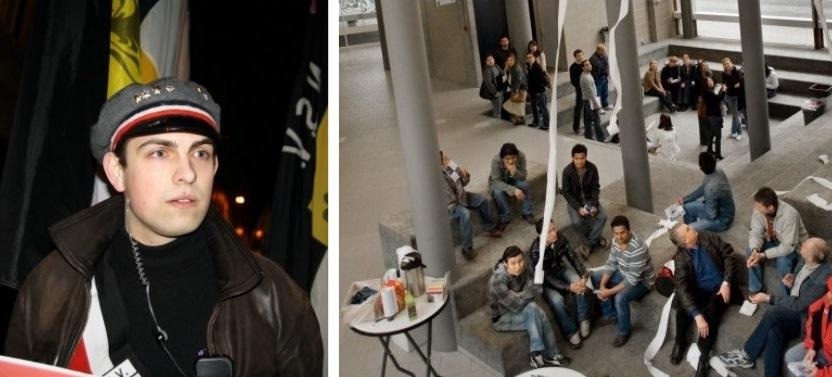 Tom Van Grieken ne se limite pas aux discours. Il mène campagne sur le terrain pour diffuser ses idées réactionnaires et provoquer, et ce depuis le début de son engagement politique. En 2009, encore étudiant, il a été à l’initiative d’une action « du papier pour les sans papiers » : lui et ses camarades ont jeté du papier toilette sur des personnes sans papiers qui occupaient un bâtiment universitaire.