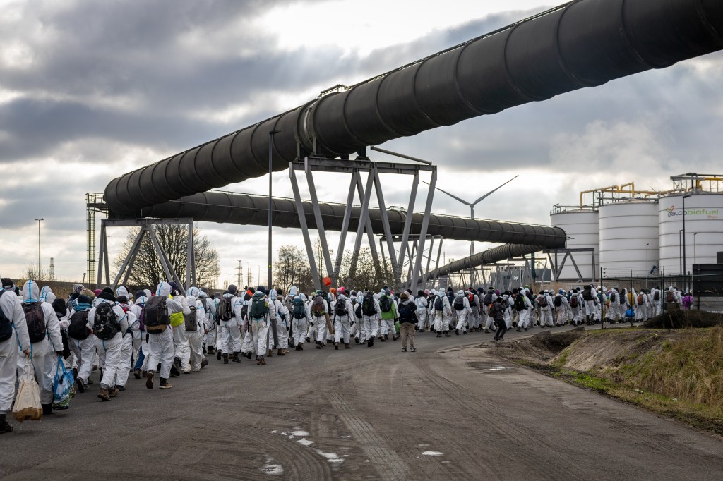 Dès dix heures du matin, des centaines de militant·es se sont rendu·es sur le site de Cargill. Parmi les 1 400 personnes inscrites à l’action, une centaine ont été arrêtées administrativement alors qu’elles étaient en chemin pour se rendre au lieu de blocage. D’autres activistes ont été bloqué·es par les forces de l’ordre au niveau du quartier de la gare du midi à Bruxelles alors qu’ils et elle se mettaient en route tôt au matin.
