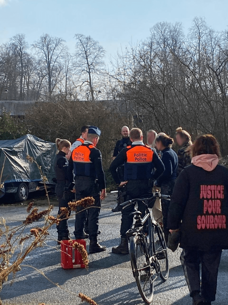 Enfin, ce vendredi 28 février, Soumaya déménageait les affaires de sa sœur avec la camionnette d’une amie. Arrivée à destination, dans les locaux de l’entreprise « Touche touche », à Laeken, dans l’atelier d’un ami de Soumaya. 8 policiers entrent dans l’espace privé pour contrôler et fouiller le véhicule. Ils avancent plusieurs motifs : la voiture serait enregistrée comme appartenant à un collectif d’extrême gauche (alors qu’elle sert à déplacer des oeuvres d’art pour une entreprise et qu’elle n’a aucun lien avec l’extrême gauche), une patrouille était là pour investiguer sur les lieux « censés être vide » (alors que les locaux sont gérés depuis 7 ans par des l’agence Interim pour des ateliers d’artistes ), et qu’une effraction avait été constatée sur la porte d’entrée. À nouveau, donc, des motifs mensongers pour légitimer un contrôle et une fouille, intrusive et fatiguante pour la famille. Contacté, un témoin, membre de l’entreprise « Touche touche », se dit certain que l’attitude des policiers est liée aux activités de « Justice pour Sourour ».