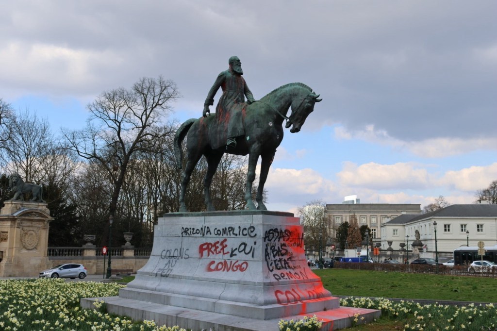 Tout le long de la manifestation, des graffitis ont été apposés sur les murs des rues que le cortège à traversé. Des manifestant·es s’en sont pris·es à plusieurs institutions et symboles des violences de l’Etat ; la statut du roi génocidaire Leopold II a été recouverte de peinture, l‘Office des Etrangers a été ciblée, une des revendications de la manifestation étant la fin de la pénalisation du séjour des personnes sans-papiers. Des bâtiments de l’Union Européenne ont également été tagués et une banque AXA a été prise pour cible.