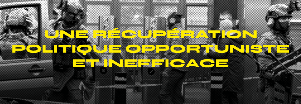 Si les médias sont coupables de servir la soupe sécuritaire, les politiques, eux, excellent dans l’art de la récupération. Face à cette explosion des violences, la réponse des autorités est souvent prévisible : multiplication des opérations de police, renforcement des lois répressives et discours de fermeté. L’initiative « Place net XXL », mise en avant par le gouvernement français par exemple, illustre cette logique : elle vise à « nettoyer » les quartiers en multipliant les contrôles et les arrestations. A Marseille, des centaines d’arrestations et de nombreuses saisies ont eu lieu dans les quartiers de la Castelanne depuis la visite d’Emmanuel Macron, puis de Darmanin en avril dernier. Ils y ont décrété ce plan Place net XXL, pour « nettoyer et lessiver les quartiers de la drogue« .