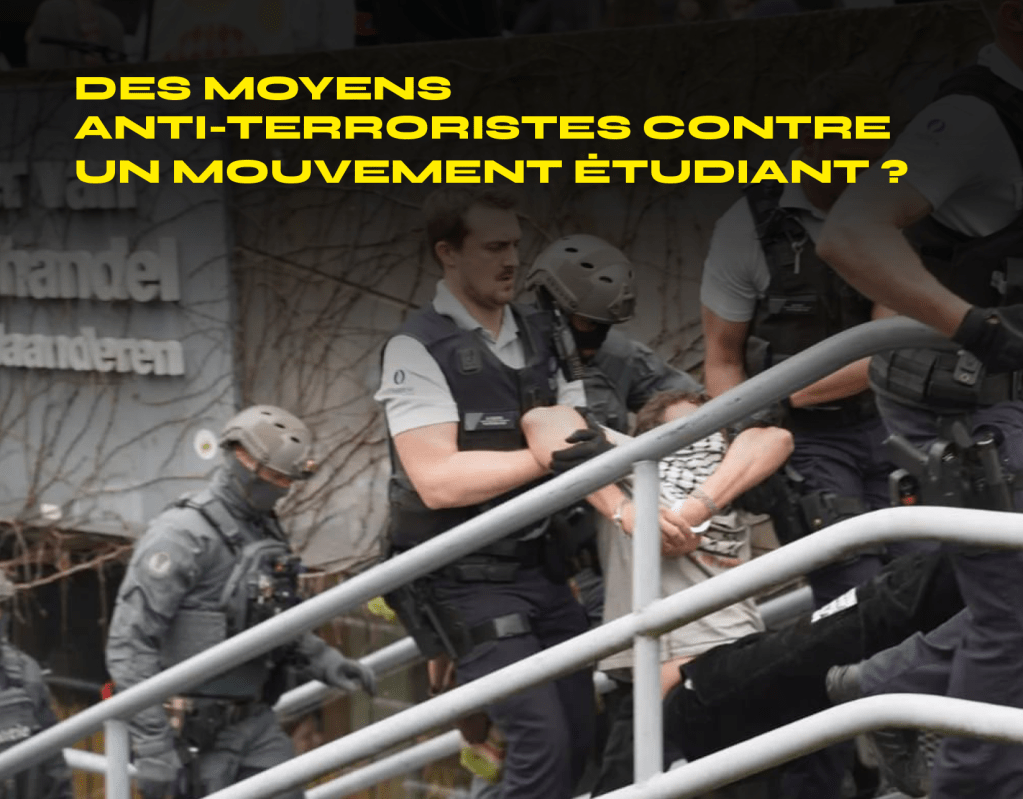 Il apparait que ces censures et intimidations s’inscrivent dans le cadre de la répression du mouvement étudiant pro-palestinien qui a mené une occupation à l’ULB en mai dernier. Pour rappel, à l’issue de ce mouvement étudiant, près de 120 personnes ont été convoquées par la police, suspectées d’appartenir « à un groupe prônant la ségrégation ou la discrimination raciale« . Comprenons par là, soupçonnées d’antisémitisme, car ils et elles avaient soutenu la libération de la Palestine et dénoncé le génocide commis par l’Etat fasciste israélien contre le peuple palestinien.