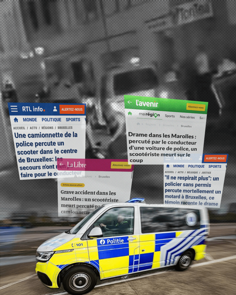 L’Avenir. Drame dans les Marolles: percuté par le conducteur d’une camionnette de police, un scootériste meurt sur le coup. https://www.lavenir.net/regions/bruxelles/bruxelles/2025/05/12/drame-dans-les-marolles-percute-par-le-conducteur-dune-camionnette-de-police-un-scooteriste-meurt-sur-le-coup-LH7G7GYX6BHZTJ7XTDYJ6B2SWU/