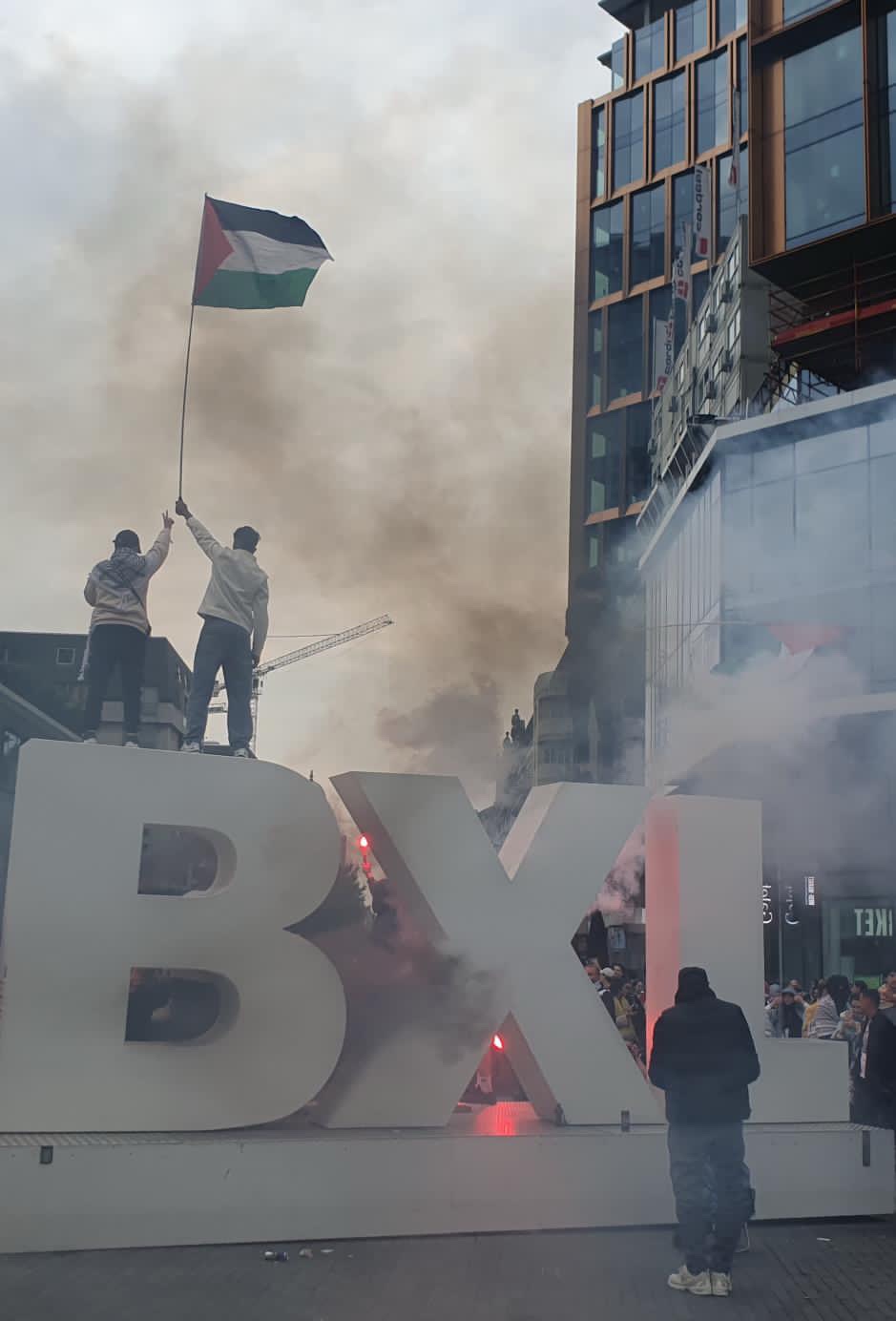 Par ailleurs, une nasse d’une centaine de manifestant·es a eu lieu à proximité de la Grand-Place où de nombreuses violences ont été constatés tout au long de l’intervention policière. Un réfugié palestinien s’est notamment fait arrêter juste après avoir quitté la nasse, alors que la police lui avait promis de le laisser partir s’il donnait son identité. Deux arrestations judiciaires ont à minima eu lieu.