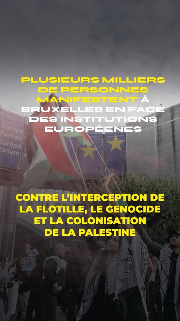 Jeudi 2 octobre, à la suite de l’interception de la Flotille par l’armée israélienne, plusieurs milliers de personnes se sont rassemblées à Bruxelles.