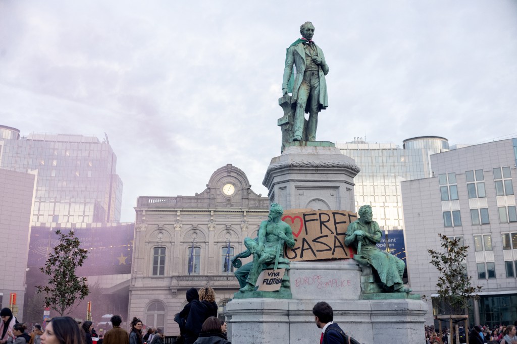 Ce jeudi à Bruxelles, plus de 5 000 personnes se sont rassemblées en solidarité avec la solidarité avec la Global Sumud Flotilla pour Gaza.