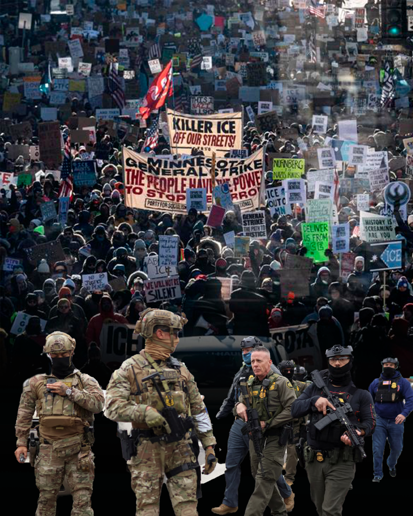 Les exécutions d’ICE et leurs rafles ont généré des résistances importantes, en particulier à Minneapolis, où la confrontation entre l’agence fédérale et les classes populaires états-uniennes s’intensifient. Les opérations d’ICE ont mené à l’organisation d’une grève générale d’ampleur, à Minneapolis le 23 janvier, et une grève nationale historique dans tous les Etats-Unis le 30 janvier.