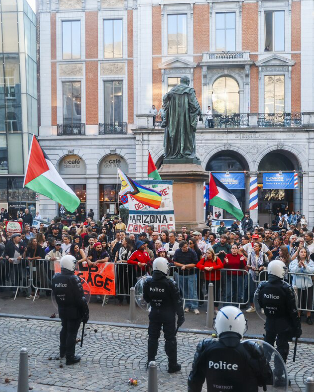 « L’attitude déjà scandaleuse des autorités continue de s’étendre à la justice, qui choisit les outils les plus lourds et brutaux à sa disposition pour réprimer nos manifestations légitimes et nécessaires contre l’extrême droitisation en cours. Face à cela, nous sommes clair.es, nous n’en resterons pas là, mais l’urgence est au soutien des personnes visées, cet après-midi au Palais. » Front Antifasciste de Liège