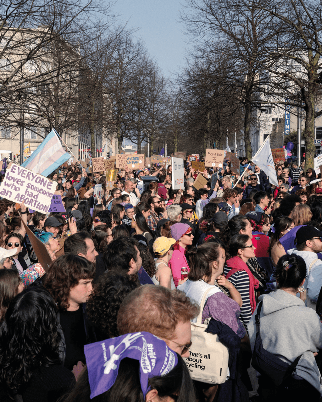 Au fil de la manifestation, plusieurs intervenant·es ont rappelé les discriminations spécifiques vécues par les femmes et les minorités de genre dans des contextes marqués par le colonialisme, l’impérialisme ou l’occupation, citant notamment des situations au Congo, Iran ou en Palestine. Les critiques ont également porté sur certaines mesures du gouvernement Arizona, le manque de prise en compte des violences sexistes et sexuelles, les inégalités salariales liées au genre, ainsi que sur certaines tendances du féminisme excluantes envers les personnes trans, racisées ou en situation de handicap. Sont également dénoncées les instrumentalisations par l’extrême droite du féminisme pour légitimer des discours racistes ou islamophobes
