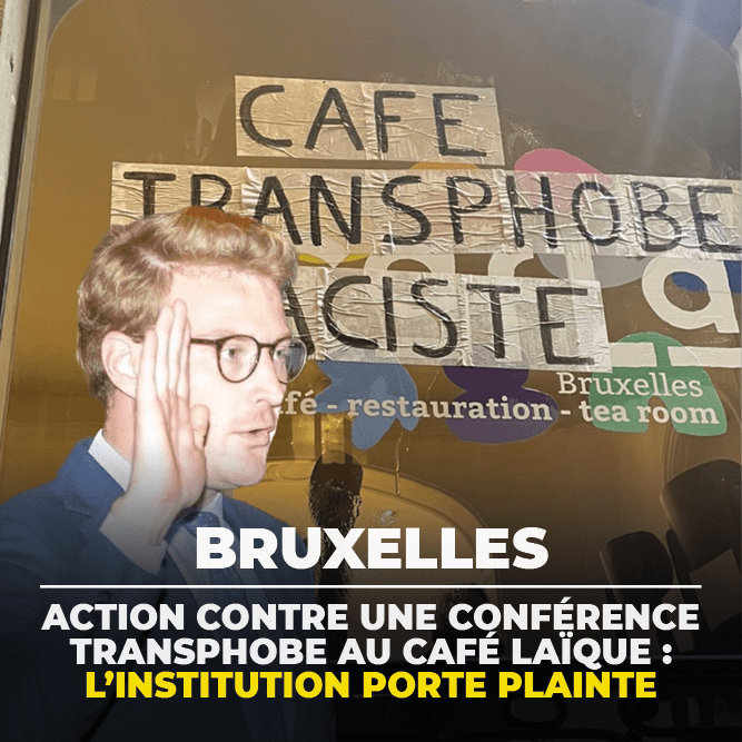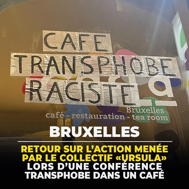 Le 15 décembre 2022, le collectif «Ursula» menait une action afin de mettre fin à une conférence ouvertement transphobe organisée par deux membres de l’Observatoire de la Petite Sirène au café laïque à Bruxelles. Cette conférence prônait, entre autres, le modèle des thérapies de conversion et abordait la soi-disant « Fabrique de l’enfant transgenre ». Le café laïque, basé dans…
