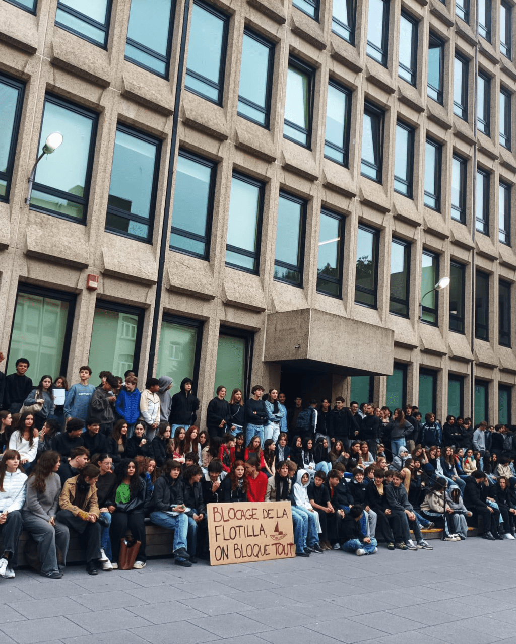 Mardi 2 octobre, alors que la Global Sumud Flotilla était interceptée illégalement en eaux internationales par l’armée d’occupation israélienne, plusieurs mobilisations et actions ont eu lieu à Bruxelles. Notamment un impressionnant blocage à l’école secondaire au Lycée Intégrale Roger Lallemand (LIRL). « Ce jeudi 2 octobre, nous nous sommes réveillé·es avec une nouvelle qui nous bouleverse,…