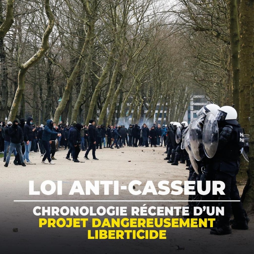 La loi « anti-casseur » a été votée en commission justice. C’était la dernière étape avant qu’elle ne passe en séance plénière. Après débat, elle sera alors une loi officielle dans le pays. C’est un tournant autoritaire historique et une avancée majeure dans le processus de fascisation en Belgique. Colleuses, jeunes révolté·es, syndicalistes, écologistes, grévistes, … toustes…